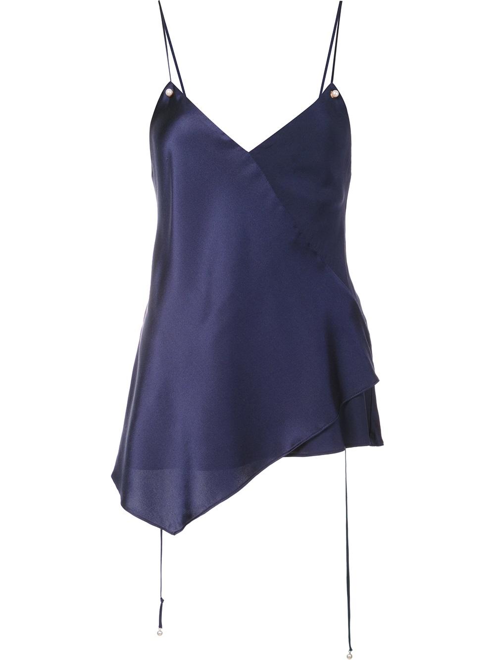 - Navy blue stretch silk pearl detail cami top from Prabal Gurung.