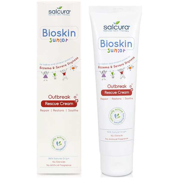 Soothe eczema and extremely dry skin on the face and body with Salcura's Bioskin Junior Outbreak Rescue Cream; a repairing, 96% natural formula that caters specifically for children and babies aged 3 months+.