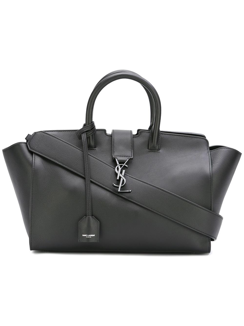 - Saint Laurent (圣罗兰) 黑色 牛皮 小号'Monogram Downtown Cabas'手提包。 顶部有弧状手柄, 可拆卸肩带, 钥匙吊, 顶部饰有翻盖, 正面标志贴, 顶置拉链, 全衬里, 内置贴袋, 内置标牌, 脚钉。