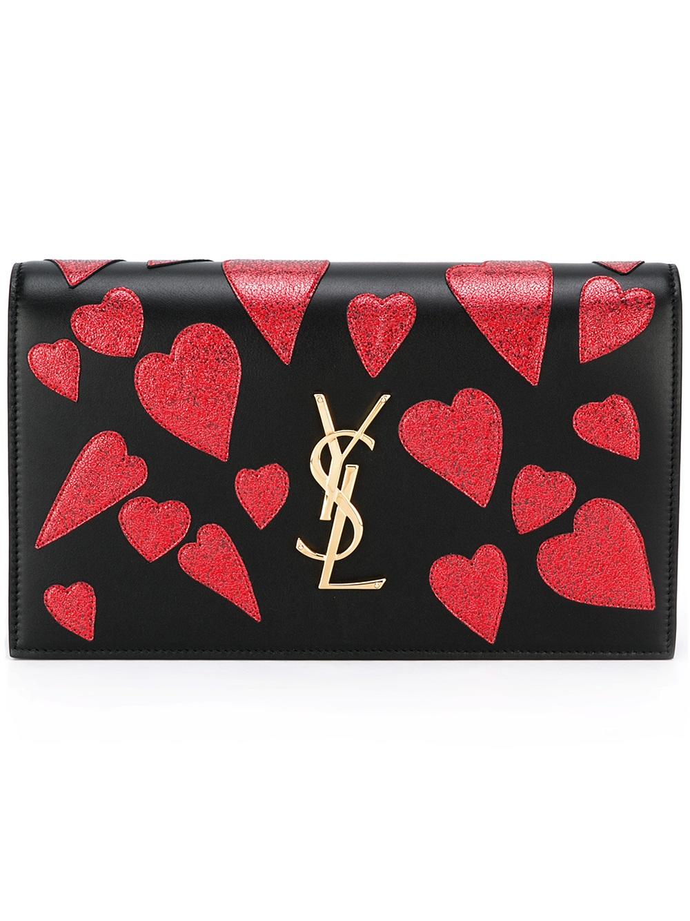 - Saint Laurent (圣罗兰) 黑色与红色 牛皮 'Monogram'手拿包。 金色五金配件, 正面标志贴, 翻盖饰有插入式的摁扣, 内置标签, 全衬里, 内置贴袋, 内置标牌。