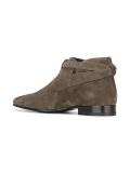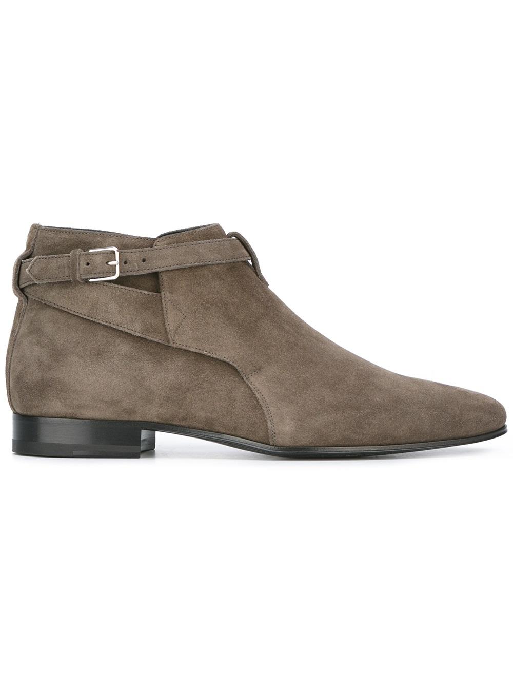 - Saint Laurent (圣罗兰) 军绿色 牛皮与绒面皮 Signature London 20 jodhpur短靴。 杏仁形鞋尖, 搭扣踝带, 鞋垫饰有品牌浮雕, 及踝, 低跟。