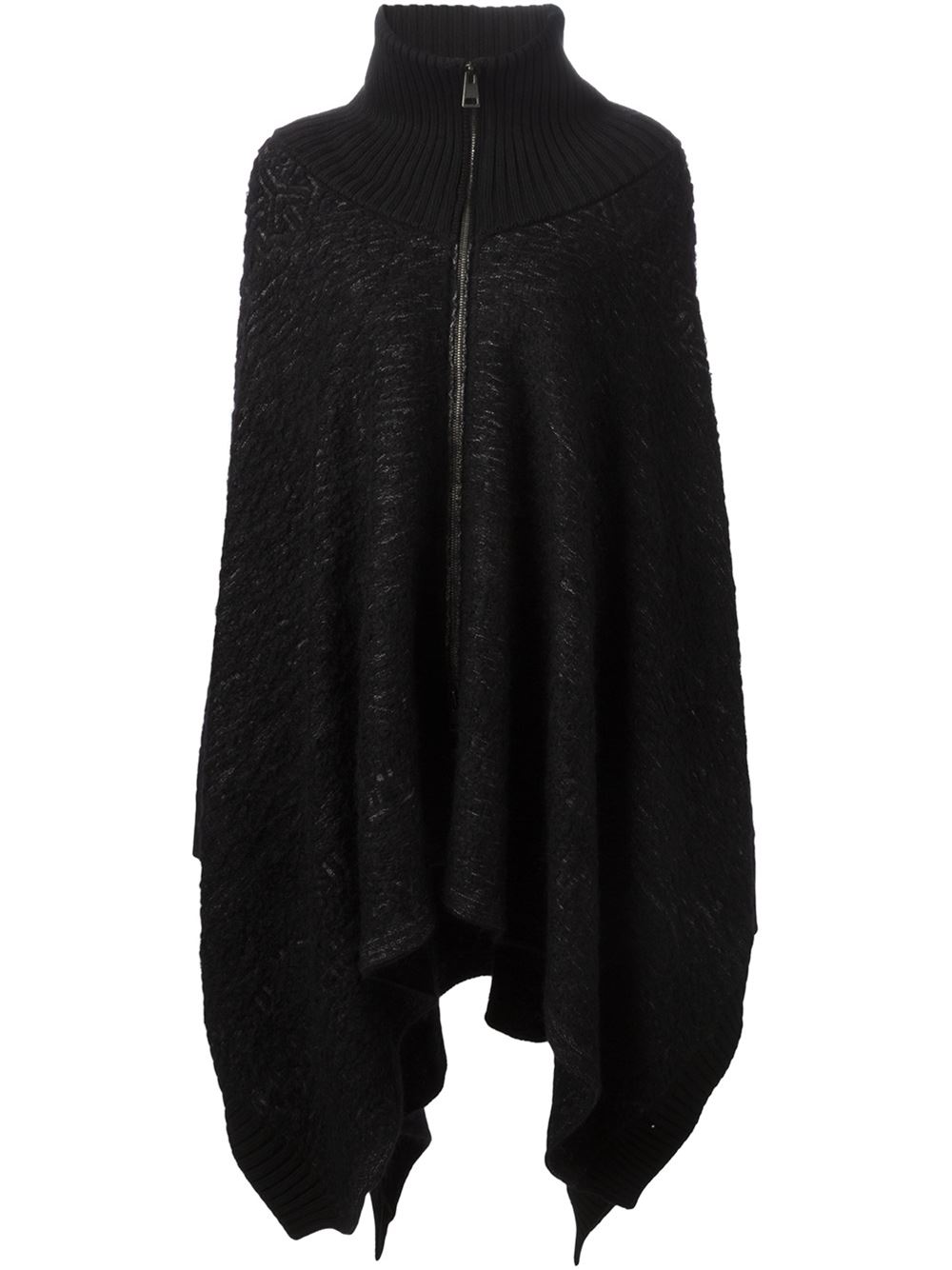 - A.F.Vandevorst 黑色 马海毛与羊毛混纺 '152 Tortilla'拉链斗篷。 高立领, 罗纹细节, 不对称设计, 中长。