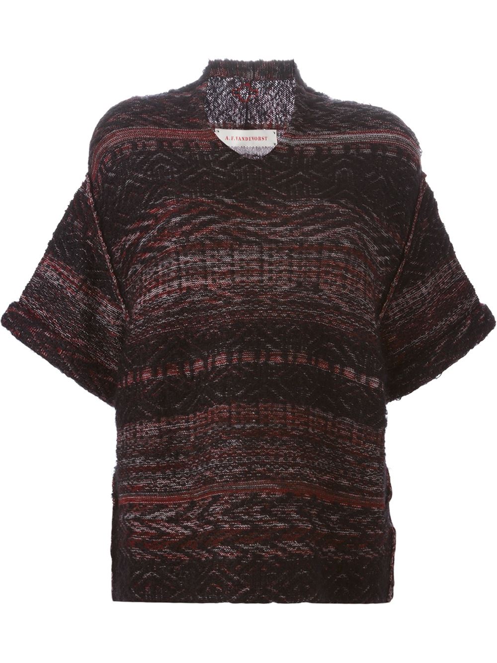 - A.F.Vandevorst 黑色 马海毛与羊毛混纺 '152 Track'毛衣。 V领, 五分袖, 编织效果。