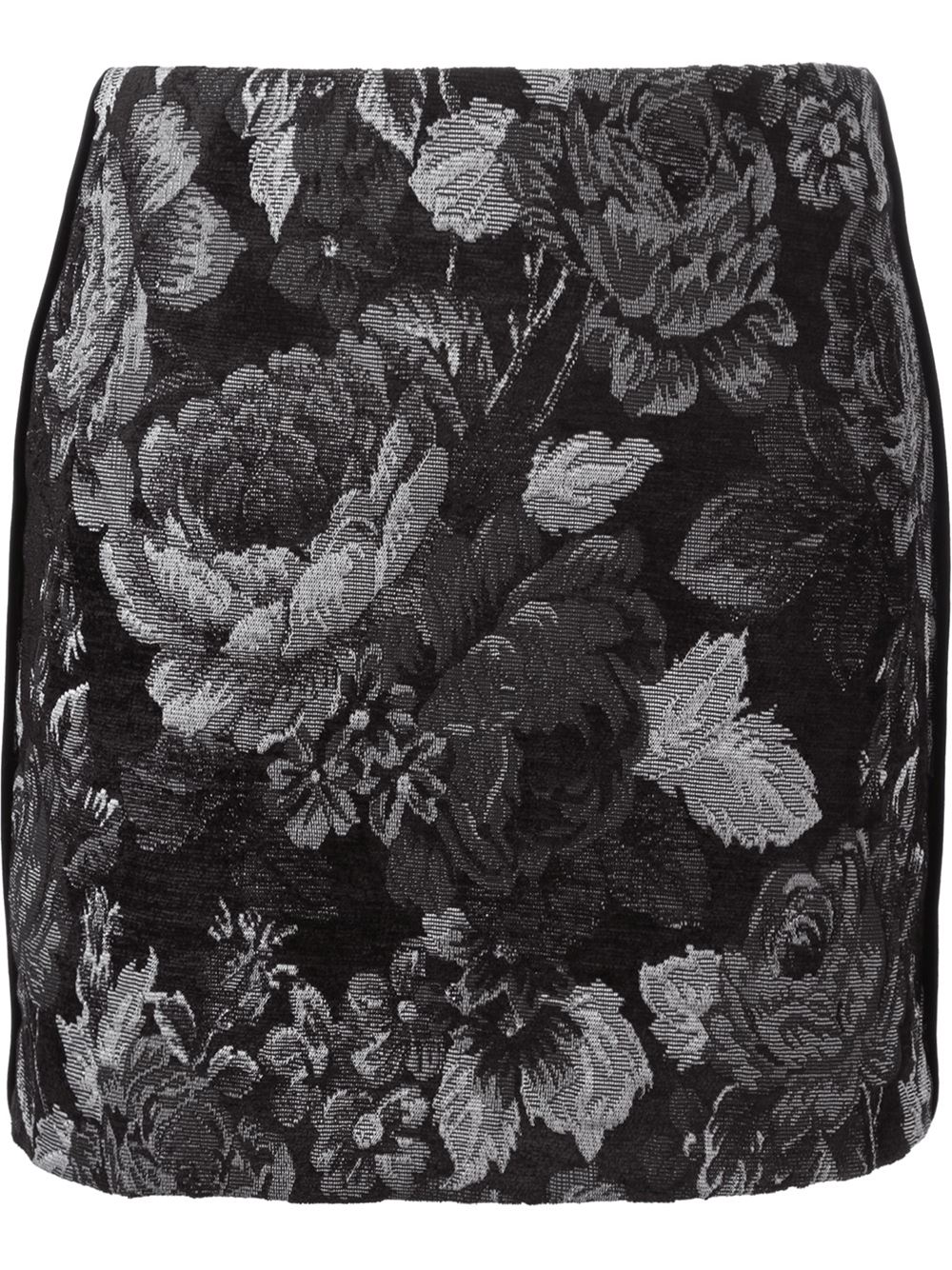 - A.F.Vandevorst 灰色 棉质混纺 '152 Santa'提花半身裙。 低腰, 隐藏式开合, 花卉印花, 侧置贴花, 短款。