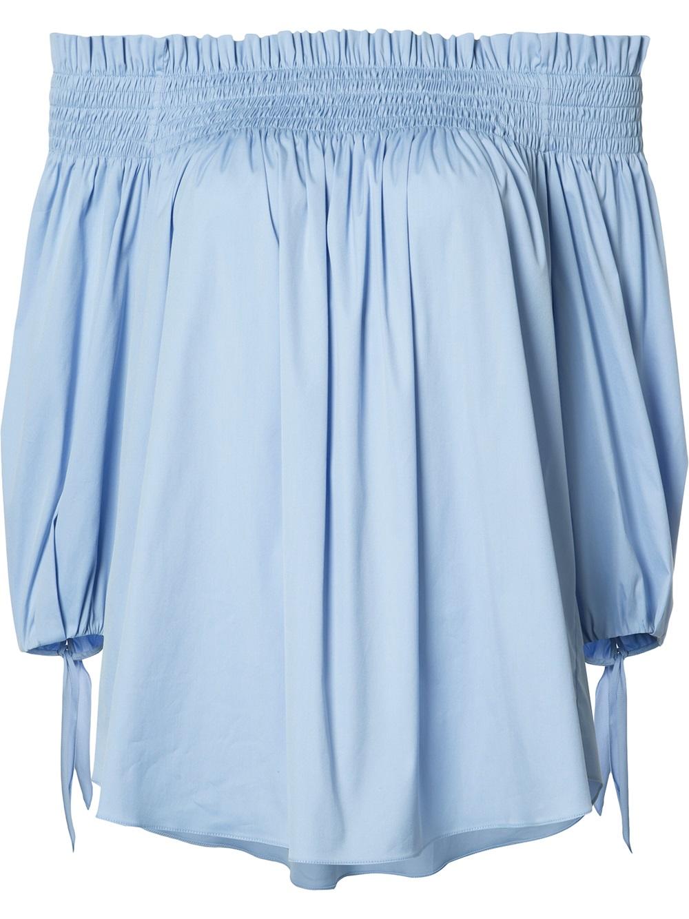 - French blue cotton blend off-shoulder blouse from Caroline Constas.