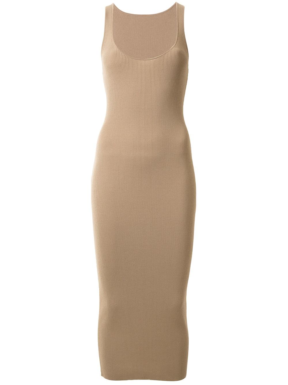 - Dion Lee 驼色 'Pinacle'背心连衣裙。 U字形领, 无袖设计, 罗纹设计, 合身廓形, 及小腿的长度。