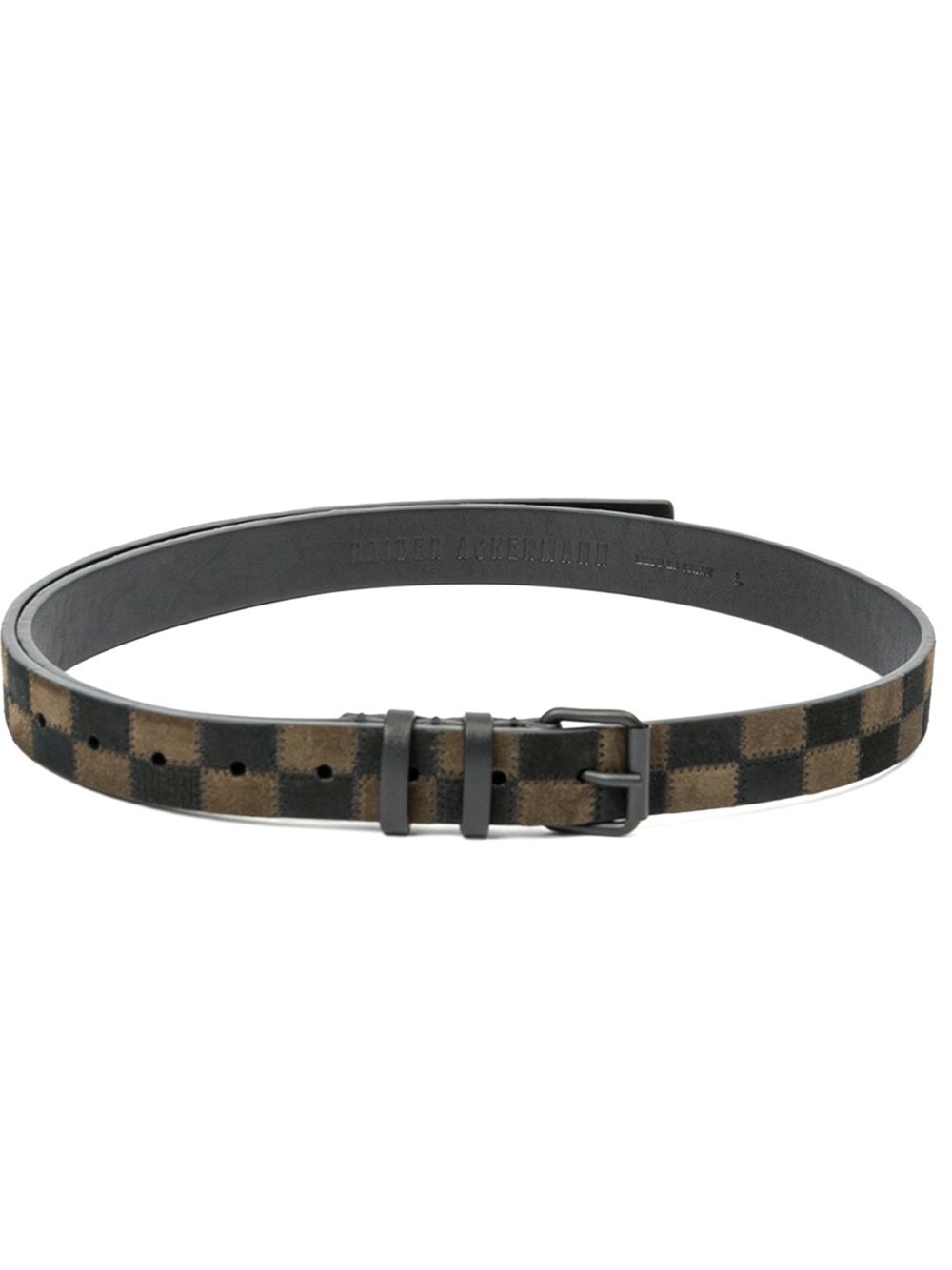 - Haider Ackermann 黑色与绿色 真皮与麂皮 格纹腰带。 银色扣, 方格花纹。