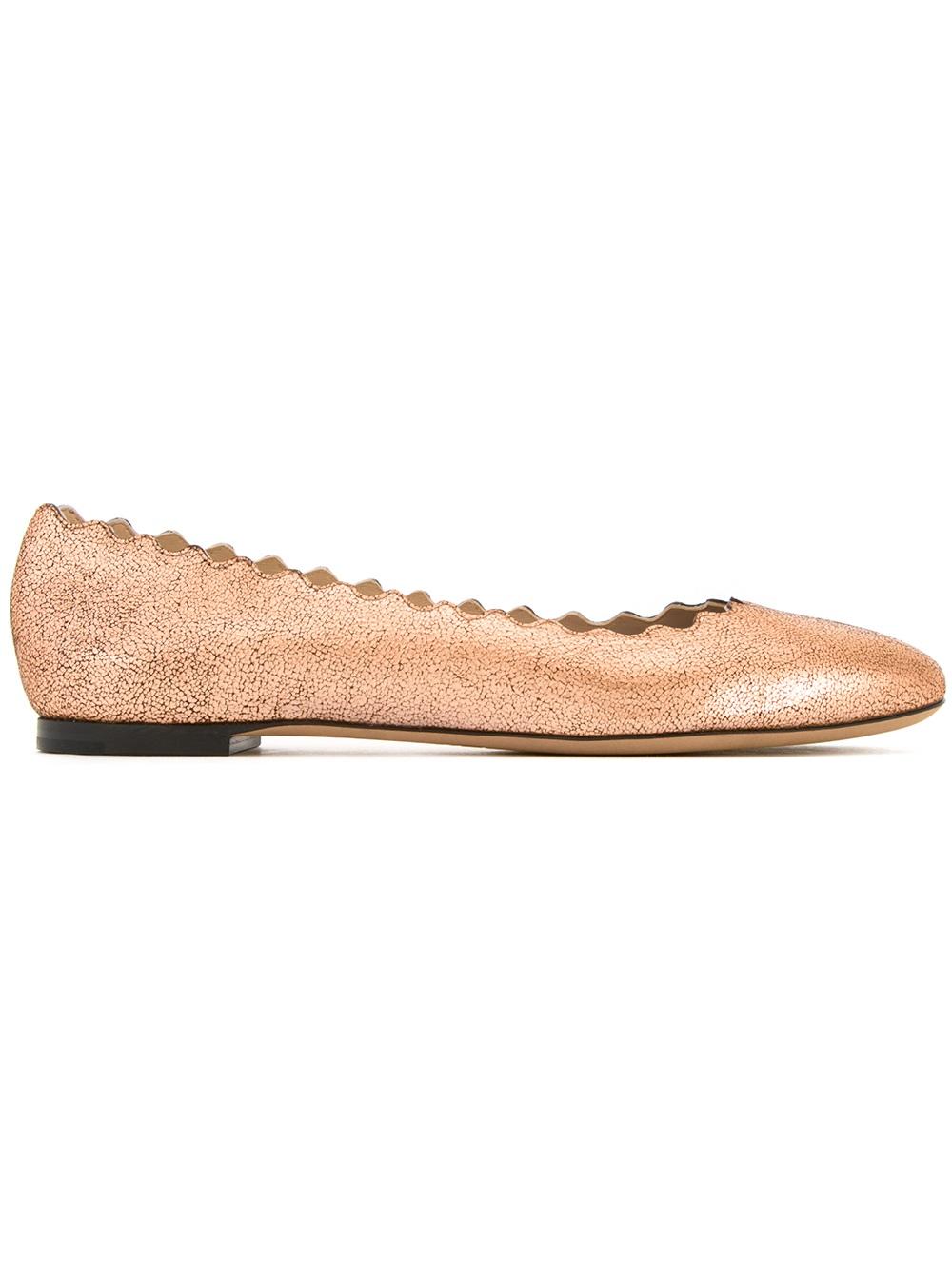 - Showcasing the Parisian label's house signatures, these Lauren ballerinas from Chloé are a classic staple from the maison updated for the new season in a lustrous sheen and cracked leather effect. Composed from pink gold-tone metallic leather, the scalloped edges provide a feminine silhouette while the flat heel enables last-all-day comfort. Featuring an almond toe and branded insole these Chloé Lauren ballerinas are ideal for all occasions.