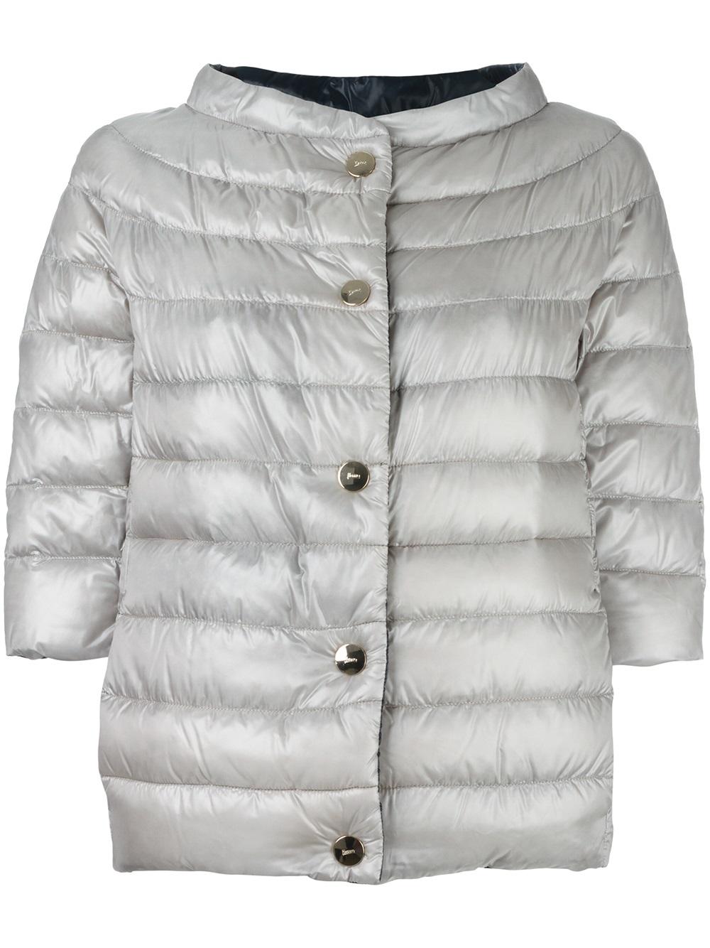 - Herno 裸色 羽绒 高领七分袖夹克。