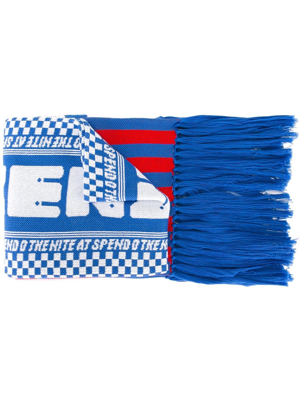 - Blue cotton racing scarf from Kenzo featuring fringed edges.
