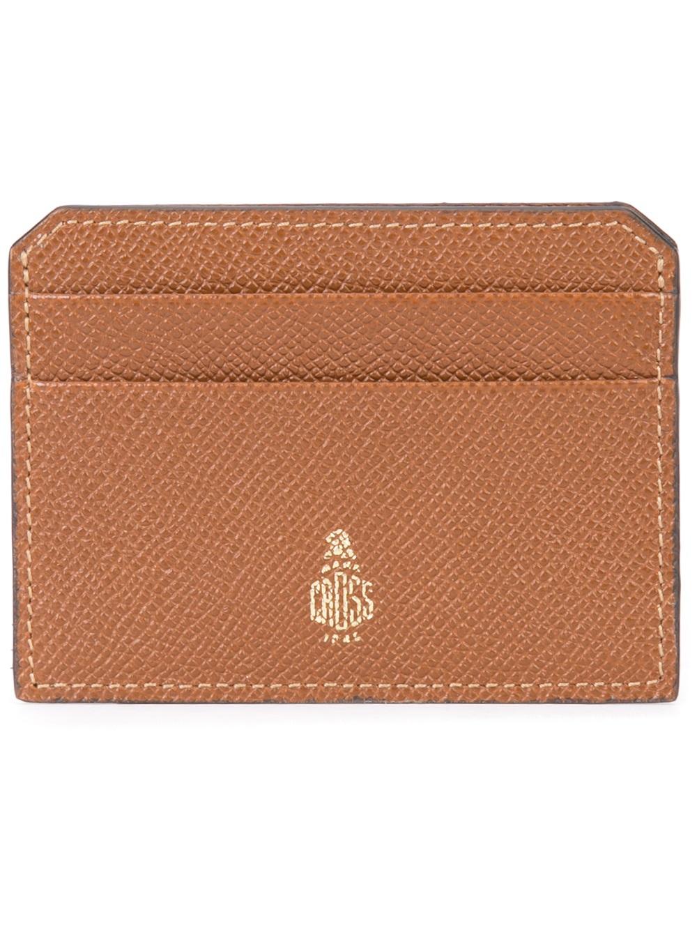 - Brown leather brand stamp cardcase from Mark Cross.