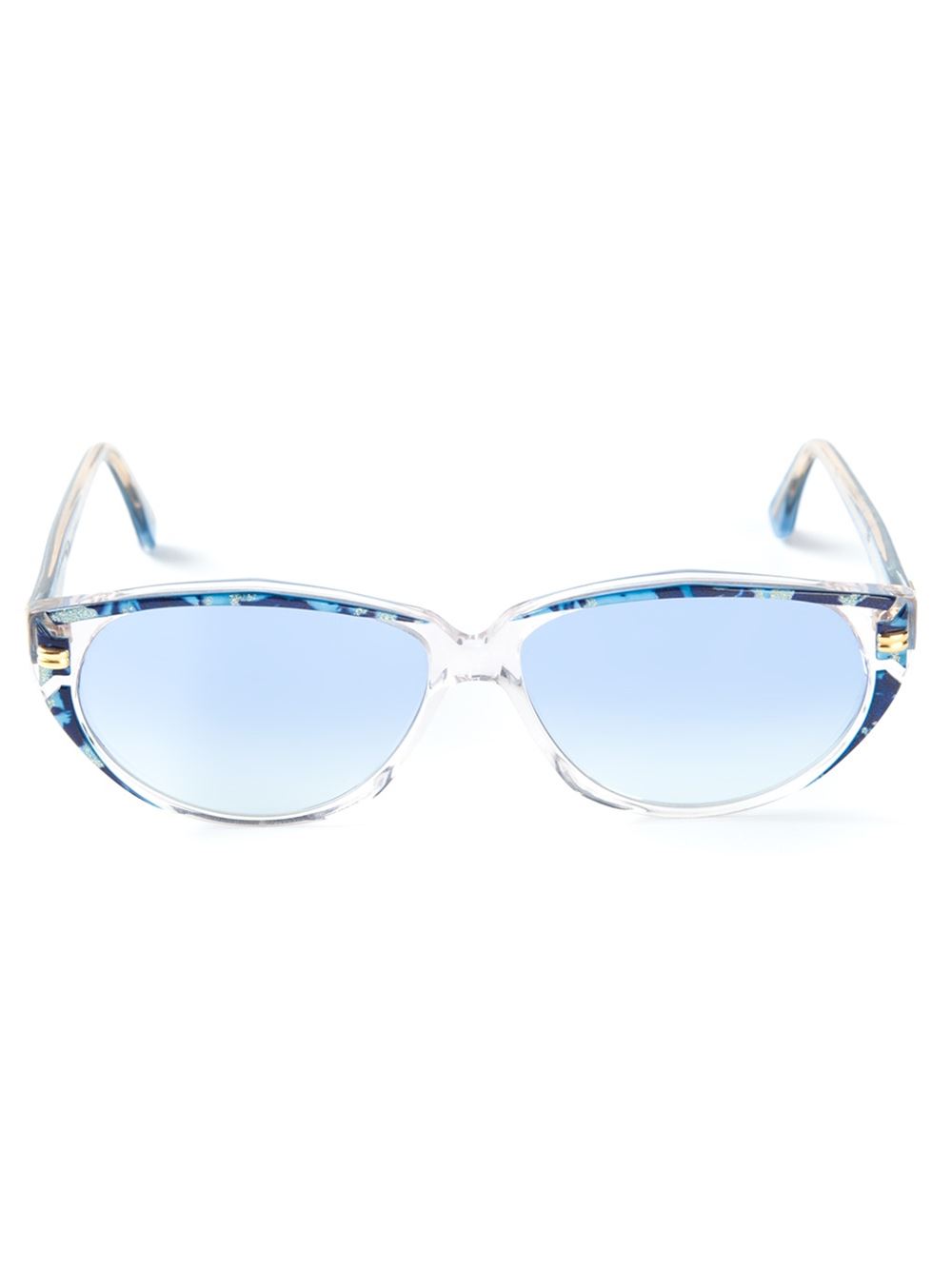 - Givenchy Vintage 蓝色 印花太阳眼镜。 渐色镜片, 椭圆形镜框, 金色标牌。这件商品源自于1980年代期间。请注意,古着(vintage)商品并非新的,因此可能有轻微的瑕疵。
