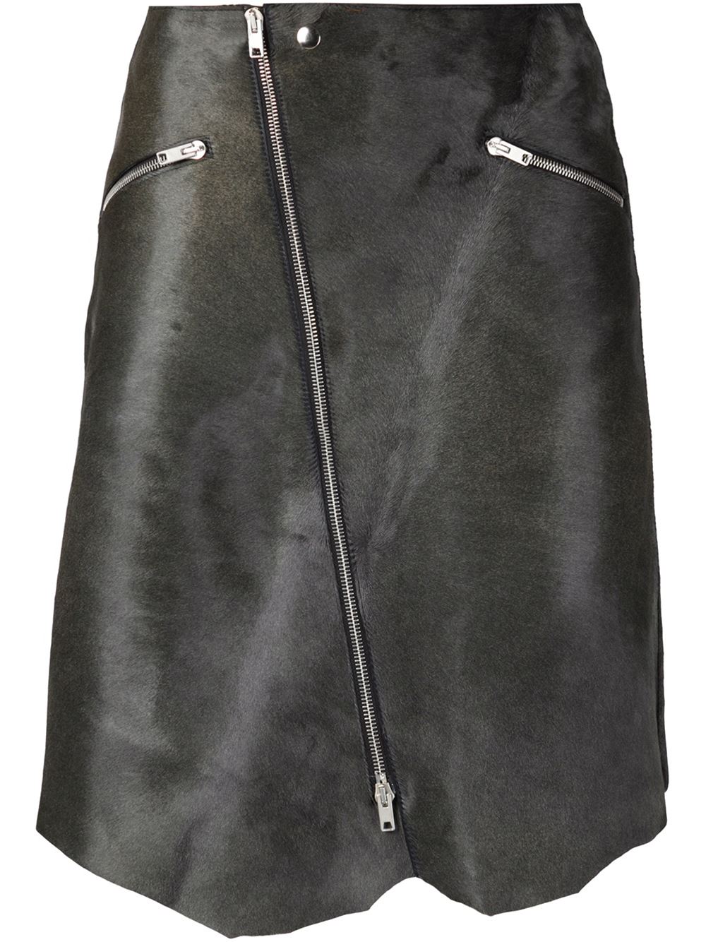 - Yang Li 黑色 小牛皮与小马皮 不对称拉链半身裙。