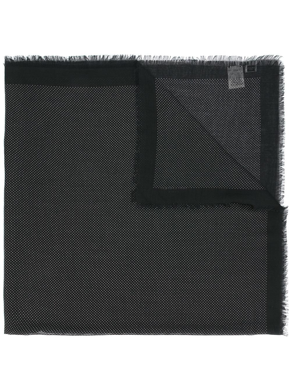 - Constructed from a luxurious blend of loosely woven cashmere and silk, Saint Laurent’s sumptuously soft polka dot printed scarf is a pleasurable addition to your winter-weather arsenal. Presented with fringed edges and a printed Saint Laurent logo, this long-length design can be worn in a variety of ways ensuring it never remains out of the weekly rotation.