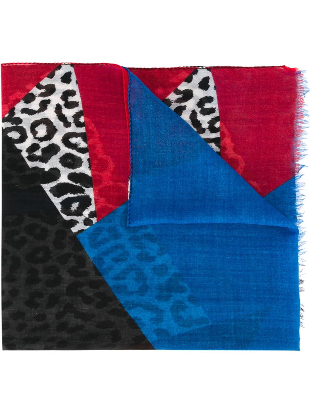 - Saint Laurent 多色 羊毛 拼色围巾。 磨损收边, 豹纹。