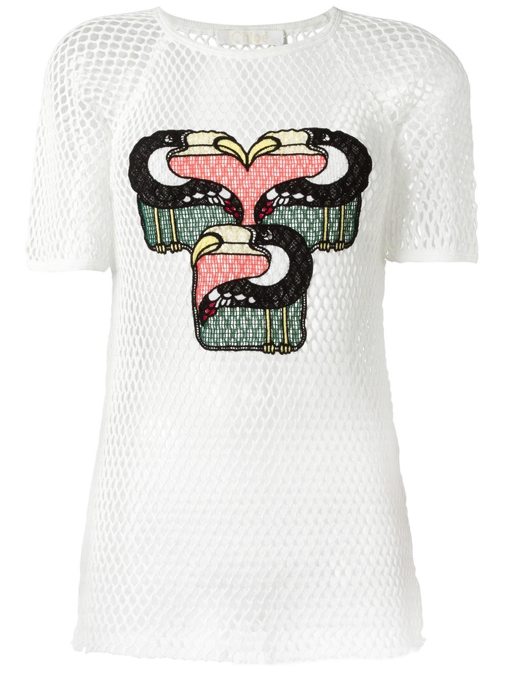 - Chloé (寇依) 奶油色 全棉 网眼刺绣上衣。 圆领, 粗针织, 短袖, 平直下摆。
