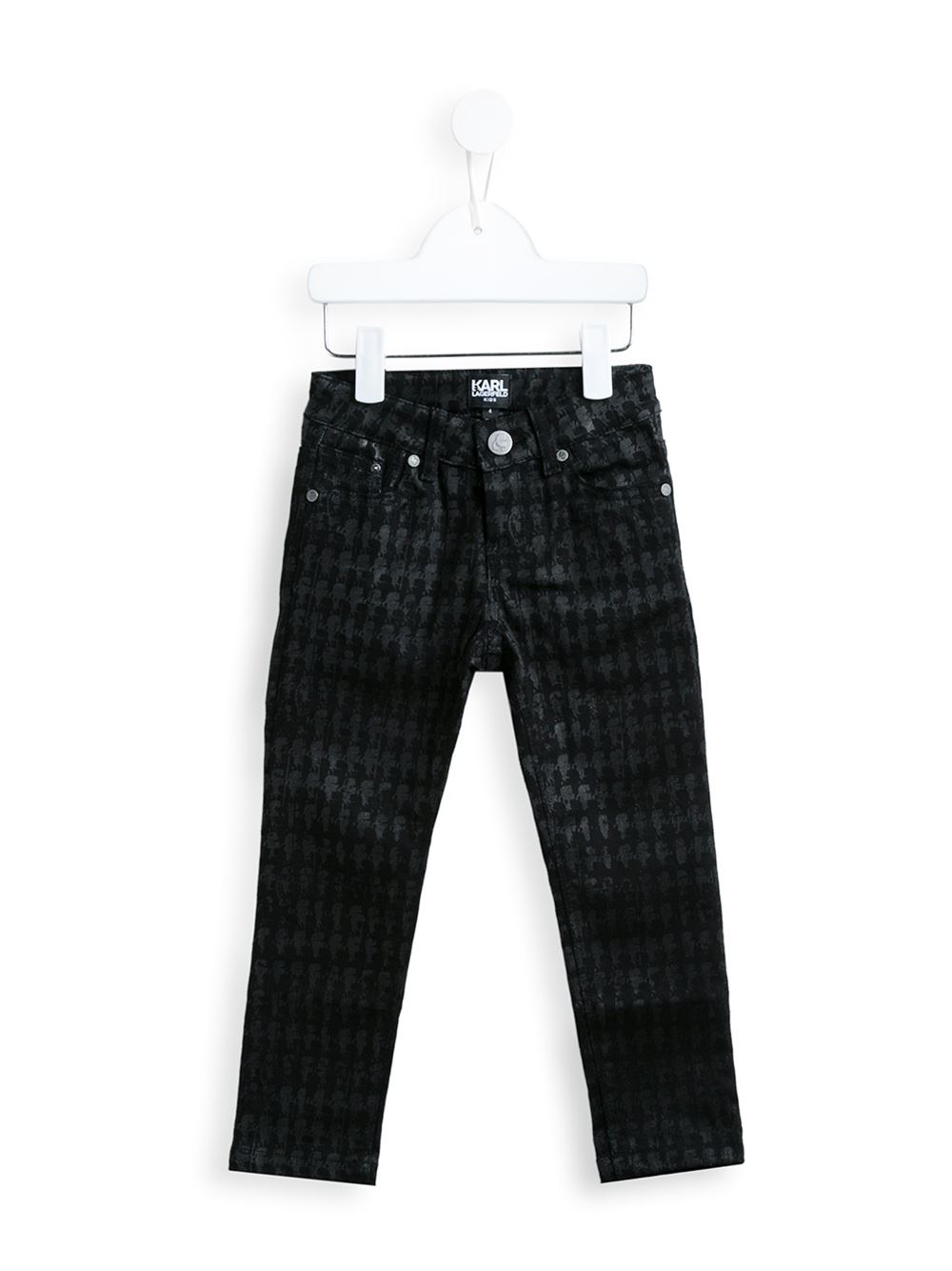 - Karl Lagerfeld Kids 黑色 弹性棉质 'Rock Chic' kameo印花牛仔裤。 隐藏式开合, 系腰带袢腰边, 五口袋设计。