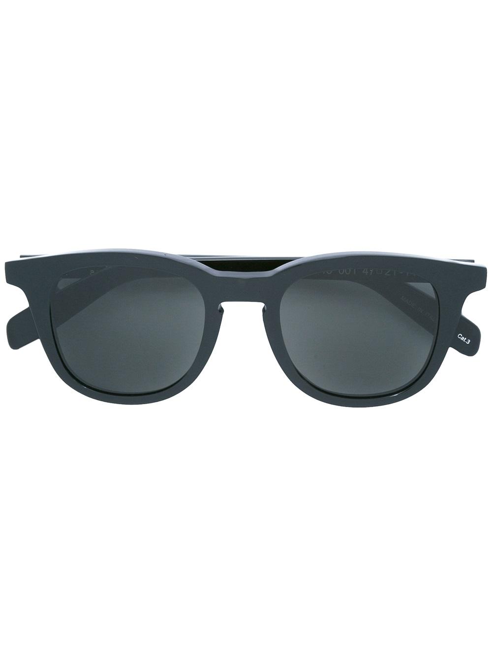 - Black Artificial->Aceta square frame sunglasses from Saint Laurent featuring dark tinted lenses, a brand logo on external arm and straight arms with angled tips. This item comes with a protective case.