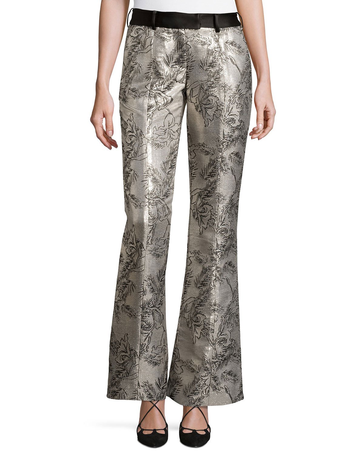 Prabal Gurung Metallic Jacquard Flared Pants, Silver