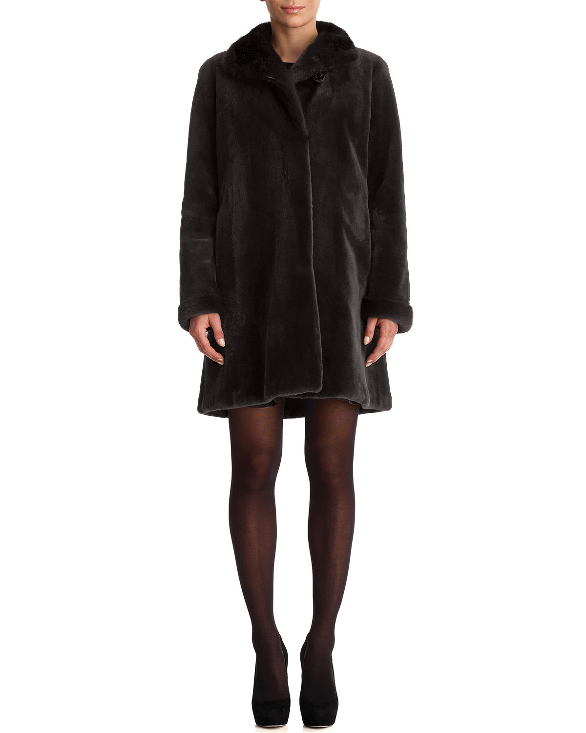- Gorski sheared, dyed mink (Denmark) fur coat reverses to taffeta.