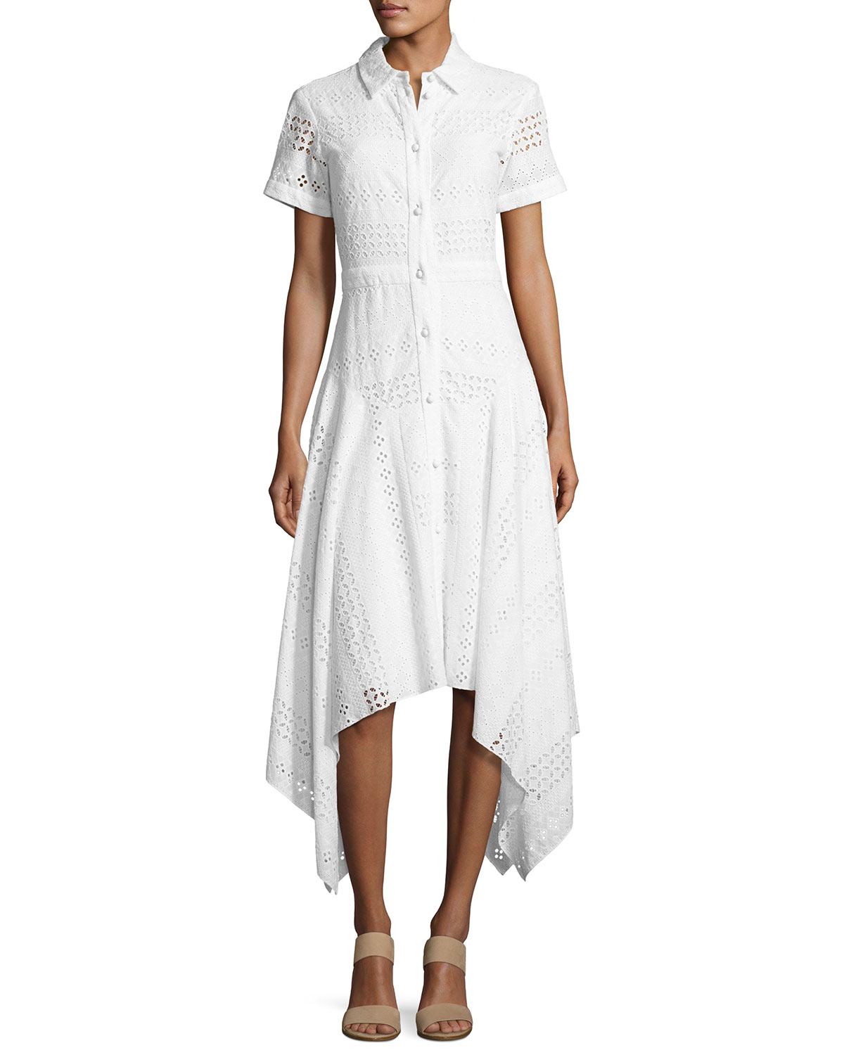 Prabal Gurung Eyelet Short-Sleeve Shirtdress, Orchid White