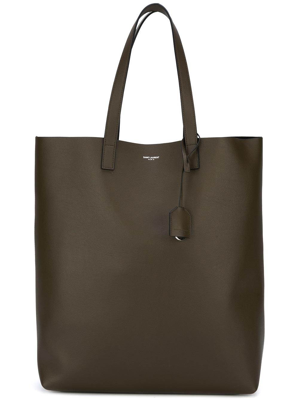 - Under the creative direction of newly appointed Anthony Vaccarello, Saint Laurent’s SS17 collection continues to showcase the label’s coveted rock n’ roll aesthetic, which remains underpinned with a sleek Parisian edge. This brown calf leather classic shopper tote from Saint Laurent features round top handles, a front centre logo stamp, a hanging key fob, an open top design and a removable interior zipped compartment.