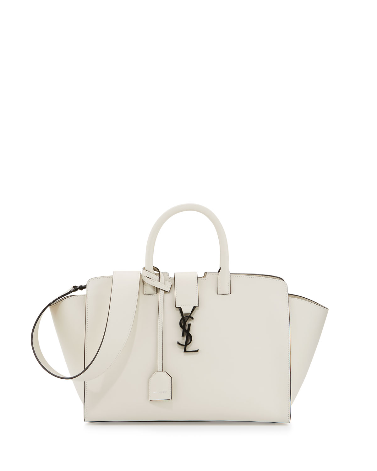 Saint Laurent Downtown Cabas Small Satchel Bag, White/Black