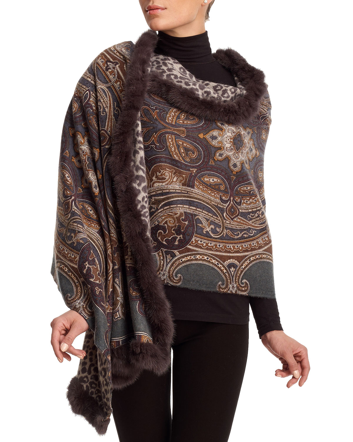 Gorski Rabbit-Trim Paisley Cashmere Stole
