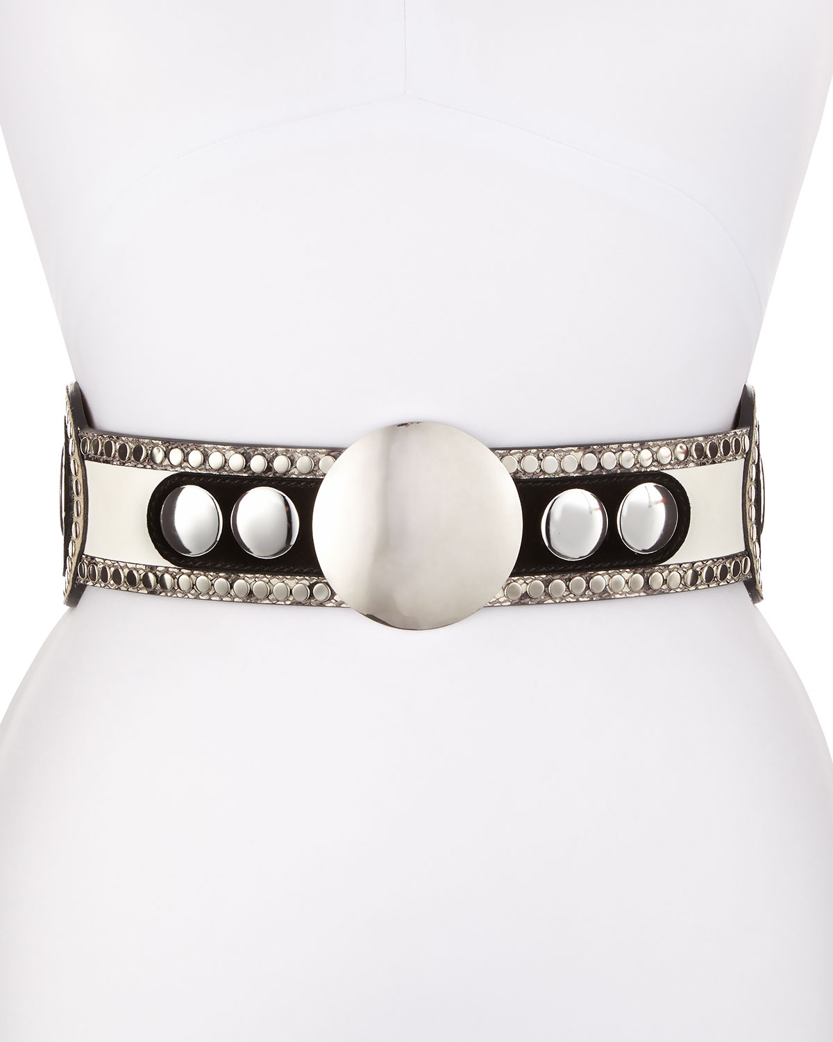 Roberto Cavalli Embellished Leather Belt, Black/Silver