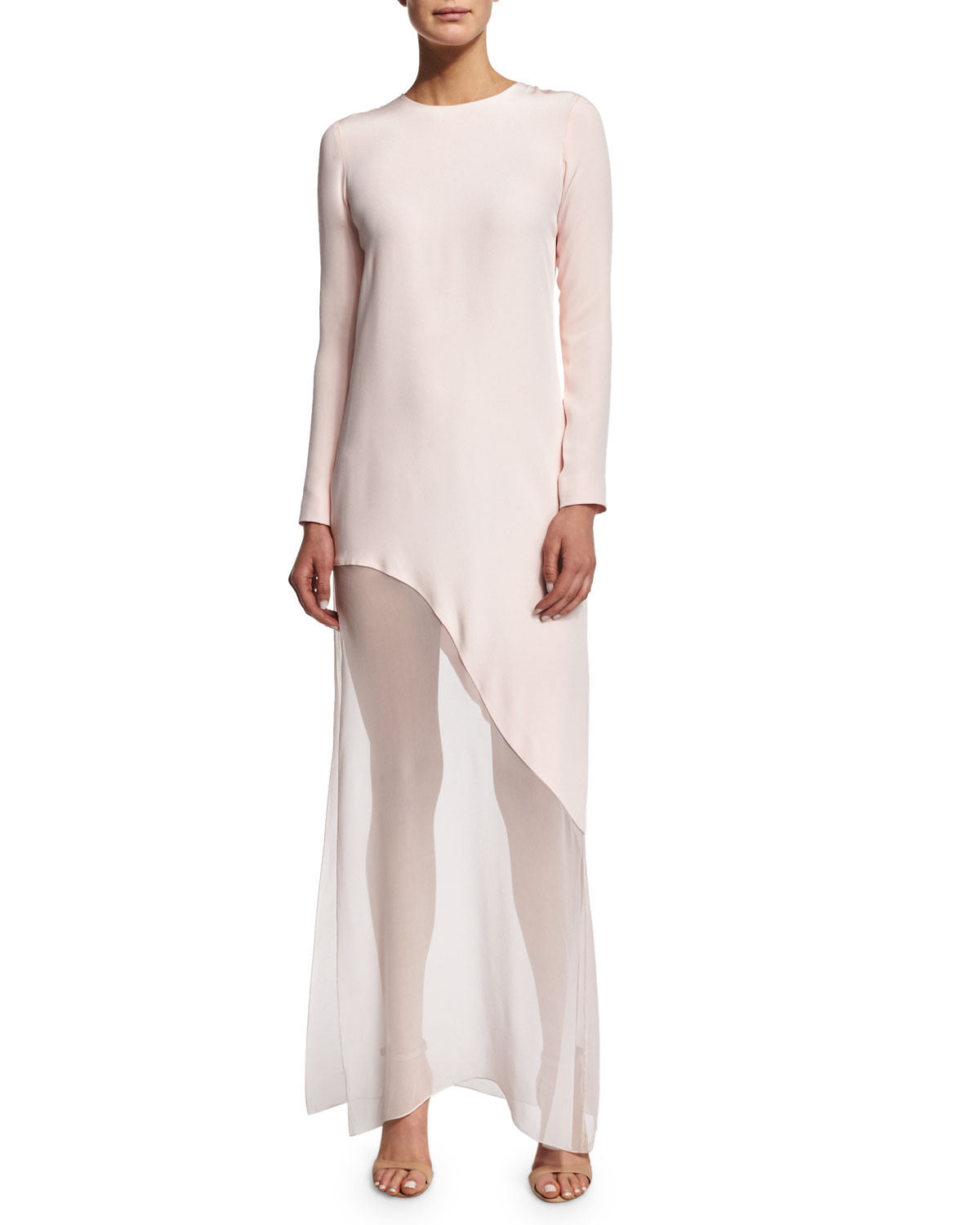 Long-Sleeve Asymmetric-Hem Gown, Shell