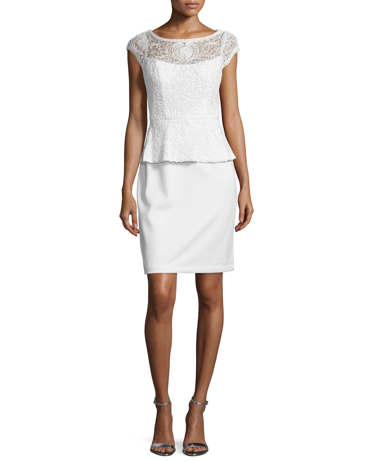 Sue Wong Lace Peplum Sheath Cocktail Dress