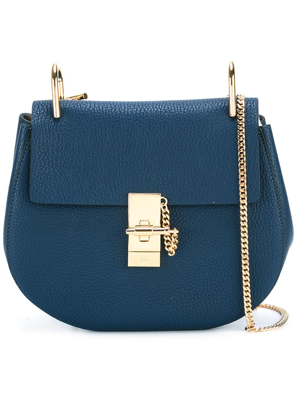 - The Chloé collection is where boyish elegance meets romantic femininity. Founded in the 1950s by Gaby Aghion, a true visionary who is credited as the pioneer of luxury prêt-à-porter, the maison has a rich history defined by an enduring youthful spirit. Expect warm, earthy tones, pastel hues, delicate flou dresses and biker leathers. The Chloé Drew bag embodies a glamorous 1970s sensibility with its round shape, gold-tone hardware and chain shoulder strap. Introduced in 2013, this bestselling Drew shoulder bag is fabricated from lambskin in a denim blue colourway and features a suede lining and internal pouch pocket.