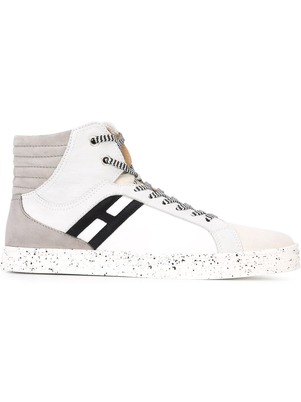 - Hogan Rebel 白色与灰色 绒面皮与牛皮 拼接高帮板鞋。
