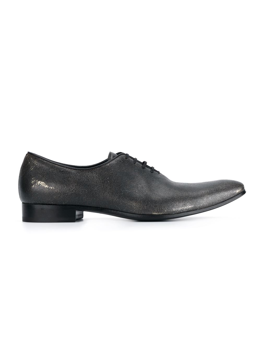 - Haider Ackermann 褐色 牛皮 金葱感系带鞋。 杏仁形鞋头, 正面绑带, 叠跟。
