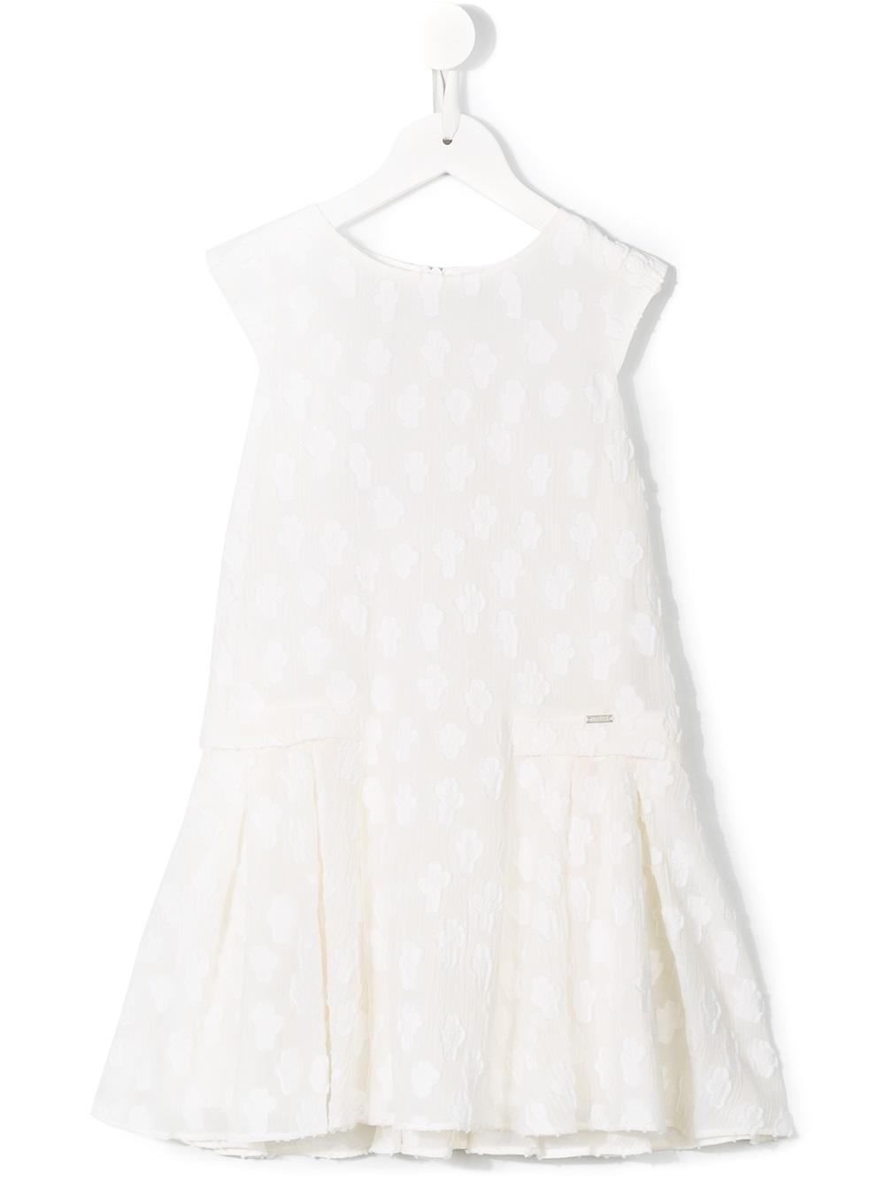 - Cool kids will love the new Kenzo Kids’ collection. Expect lively prints and signature vibrant-hued dresses, T-shirts and sweats. This white silk-cotton blend patterned dress features a round neck, cap sleeves, a concealed rear zip fastening and pleated skirt.