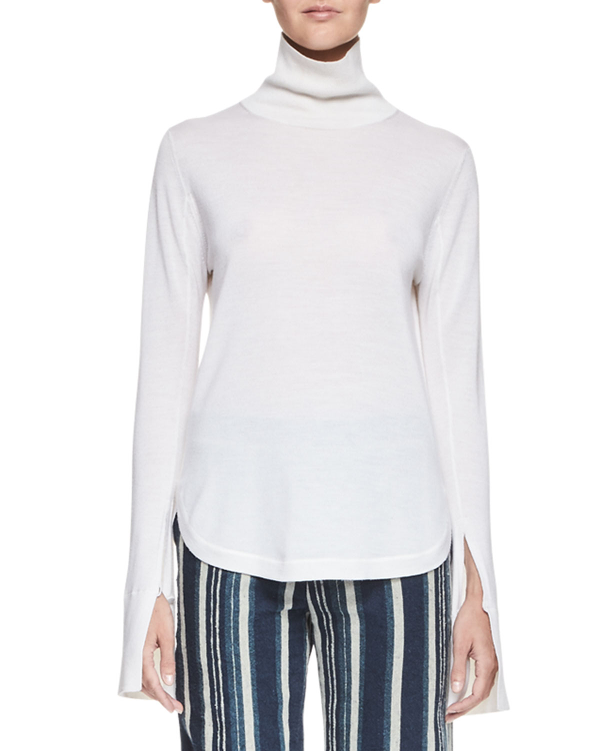 Chloé Silk Turtleneck Top w/Slit Bell Sleeves, Ivory