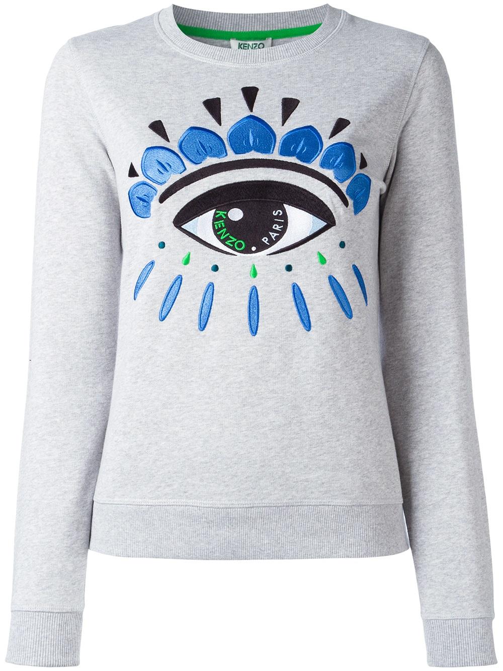 - Kenzo (高田贤三) 灰色 全棉 Eye套头衫。 罗纹针织圆领, 刺绣细节, 长袖, 罗纹底边及袖口。