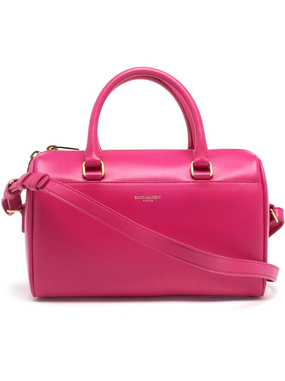 - This Saint Laurent 'Classic Duffle 6' leather bag is a luxurious day-to-night essential from the luxury fashion brand. A fine example of expert Italian craftsmanship, this spacious accessory features top handles, an adjustable shoulder strap and top zip closure complete with gold-tone hardware. Available in red and hot pink, this impeccably chic leather bag will be the perfect companion to both workwear and off-duty clothing.