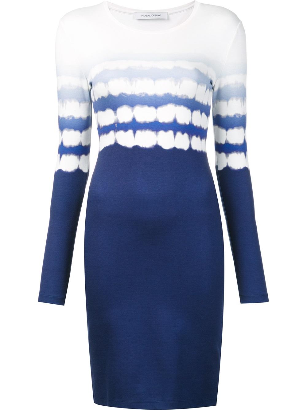 - Navy blue and white shibori print knit dress from Prabal Gurung.