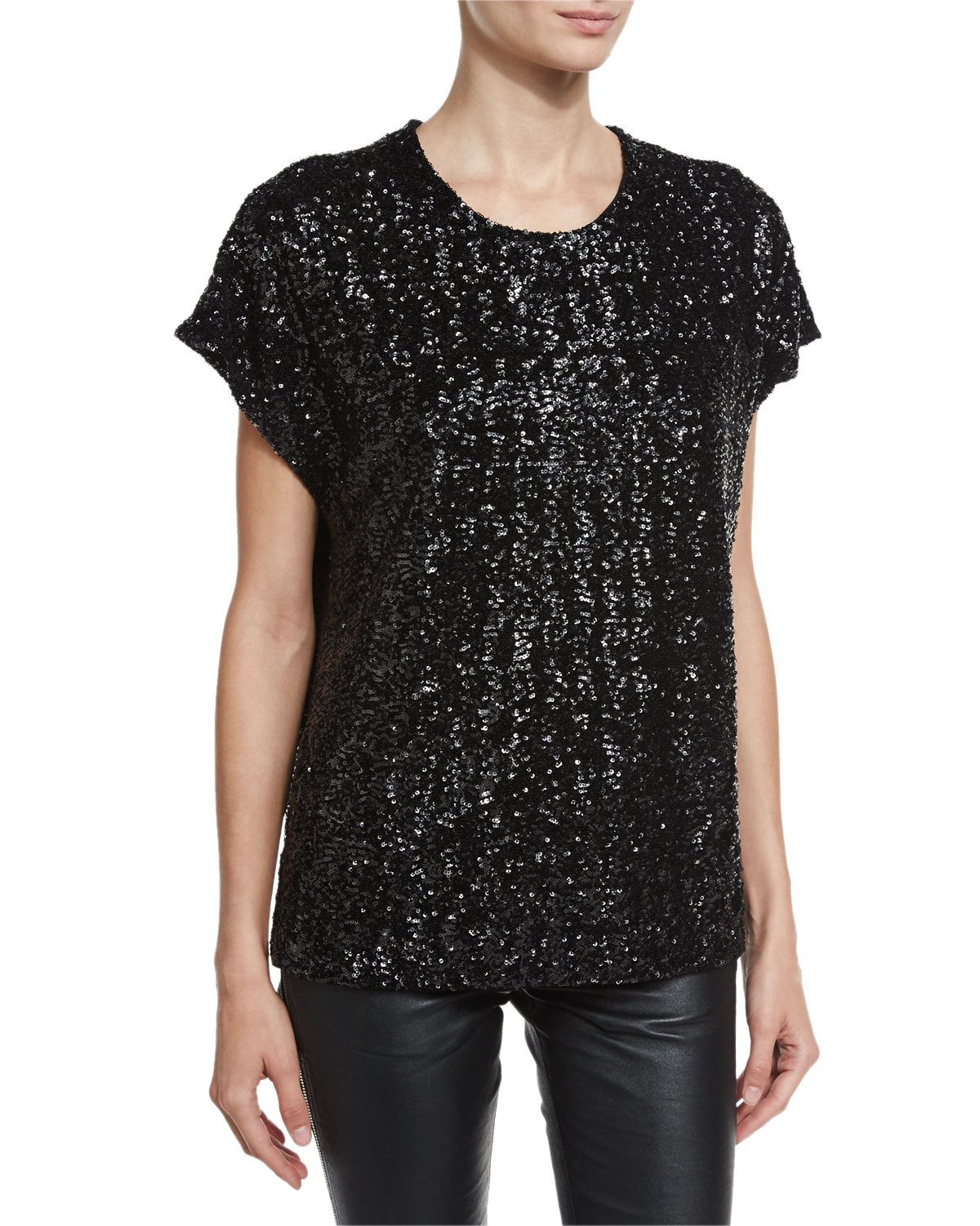 Saint Laurent Sequined Loose-Fit Tee, Black