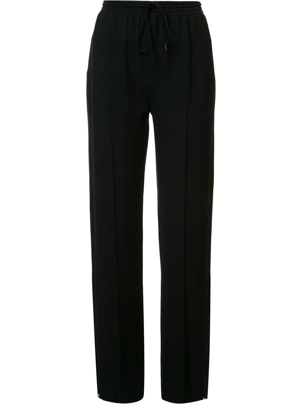 - The Chloé collection combines Brit-girl cool with Parisian glamour. These black silk blend ankle zip trackpants from Chloé feature an elasticated waistband with a drawstring fastening, creases, side seam pockets, a straight leg and a long length.