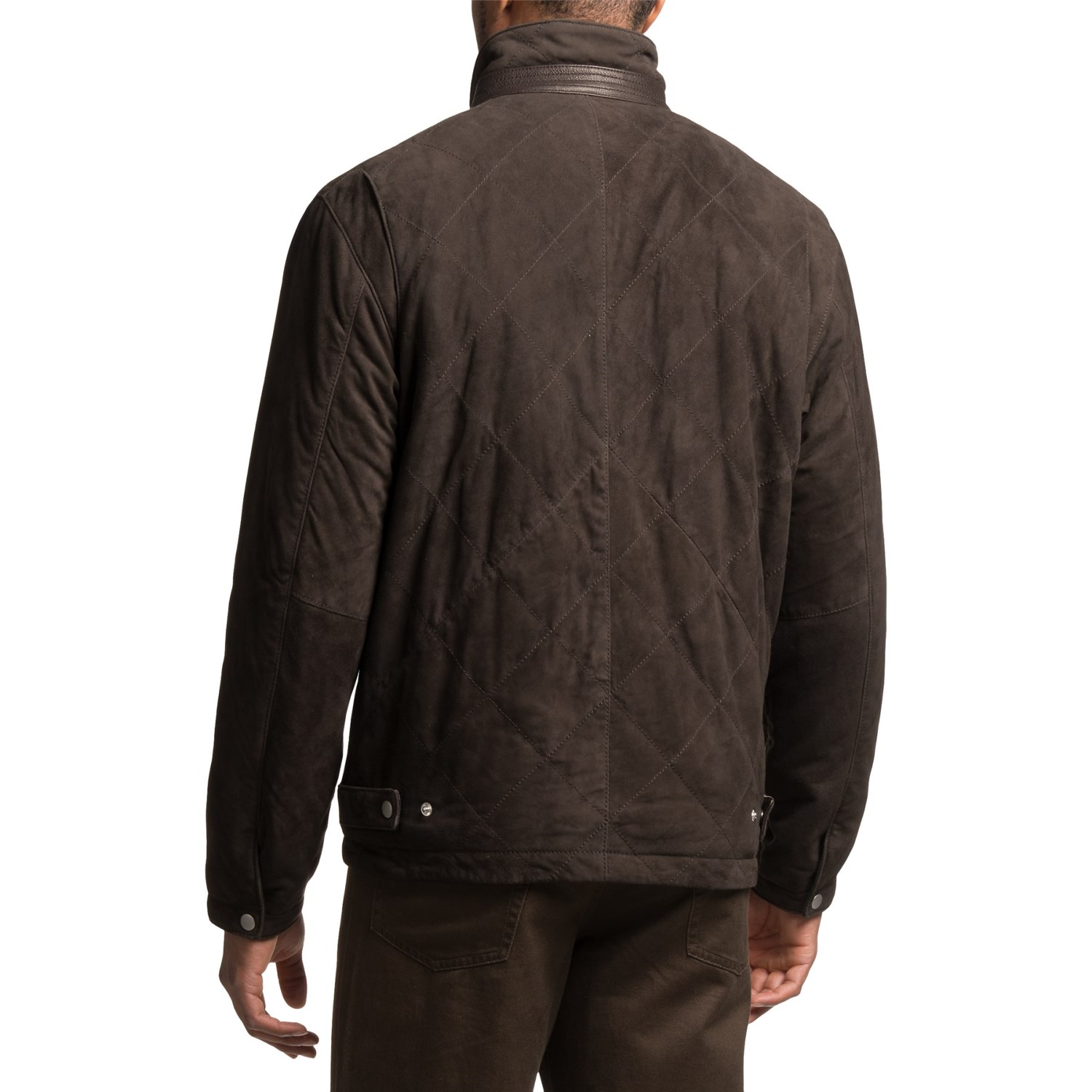 Closeouts. Suede of this caliber could only come from Golden Bear -- and this Golden Bear Rockridge jacket uses the material to its full potential, outfitting the soft-brushed exterior with tonal diamond quilting and styling it with a handsome stand-up collar.- Golden Bear is a prestigious jacket brand known for its exceptional tailoring and luxurious leathers and suedes
