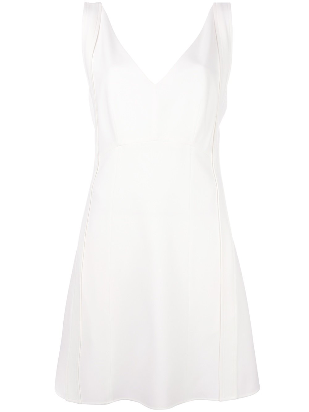 - The Chloé collection combines Brit-girl cool with Parisian glamour. This milk white silk short sleeveless dress from Chloé features a v-neck, an a-line shape skirt, a straight hem, an open back, a back tie fastening and an invisible back zip fastening.
