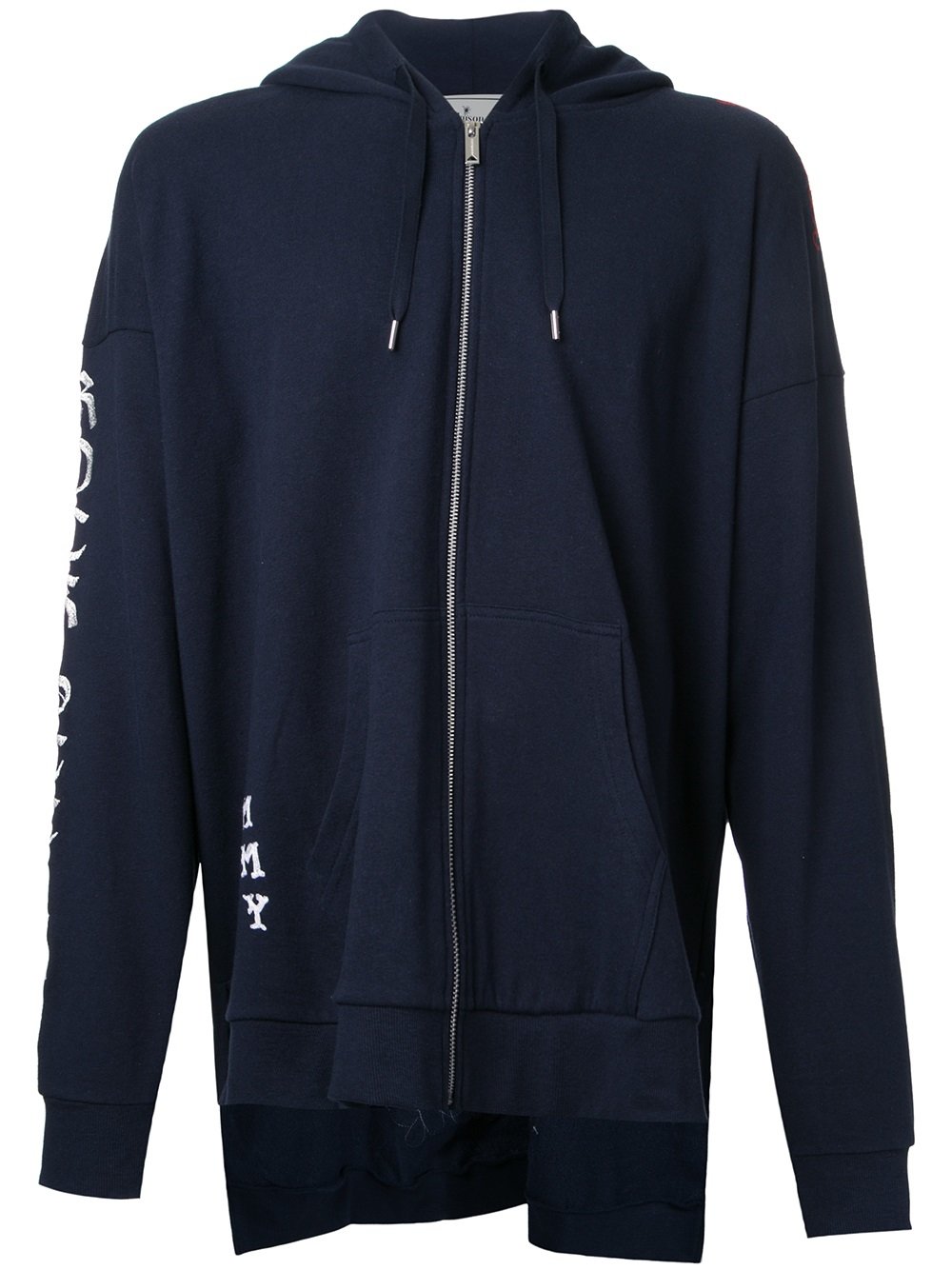 - Maison MIHARA YASUHIRO 海军蓝色 全棉 刺绣拉链连帽衫。
