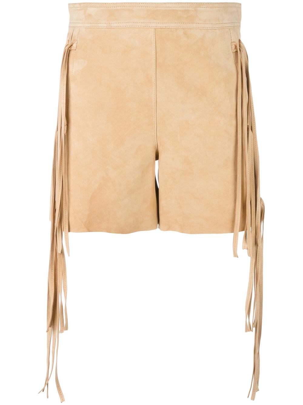 - Chloé (寇依) 米色 全棉与小羊皮 流苏短款。 短款, 后置两个贴袋。