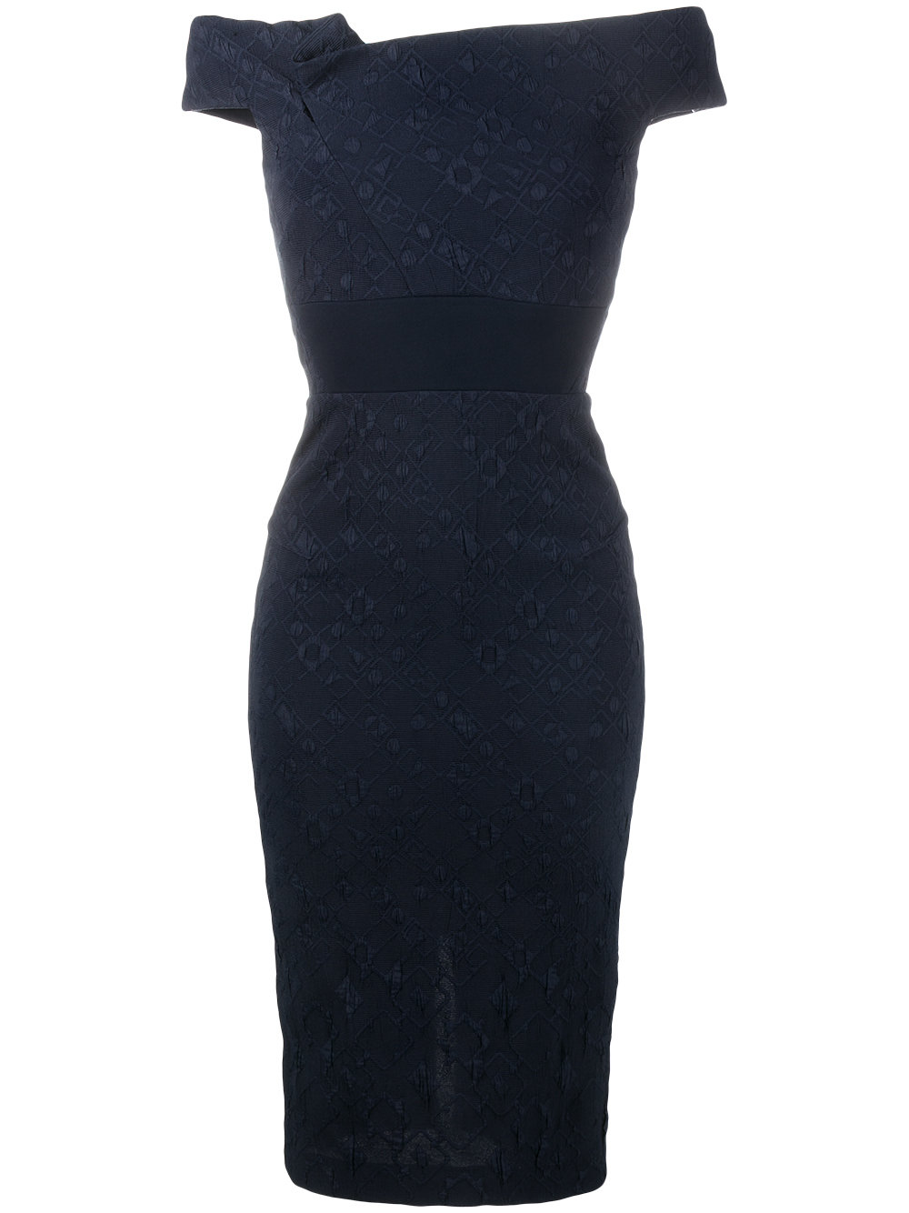 - Roland Mouret 蓝色 Monamy露肩连衣裙。