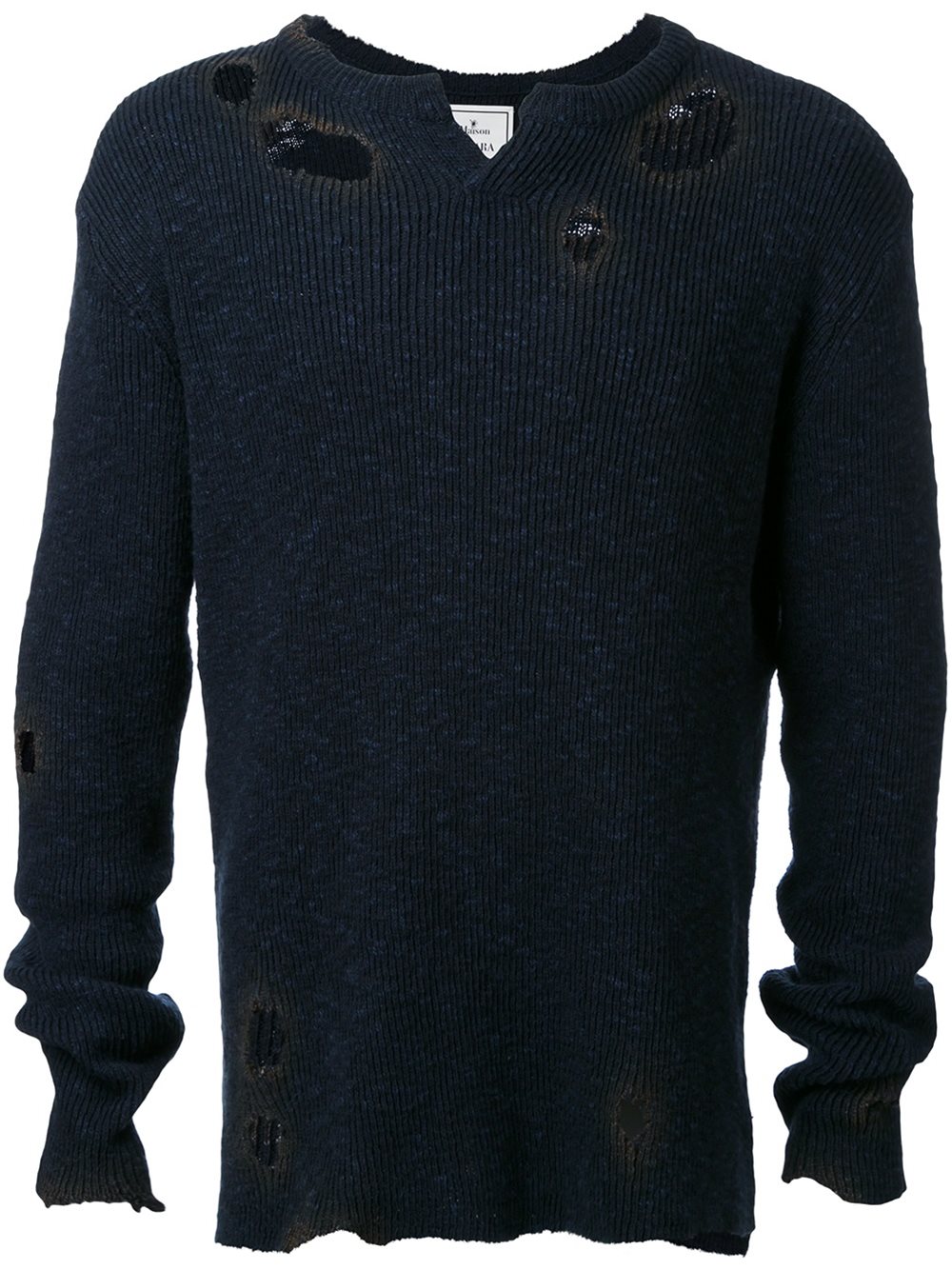 - Mihara Yasuhiro 黑色 全棉 磨损针织套头衫。