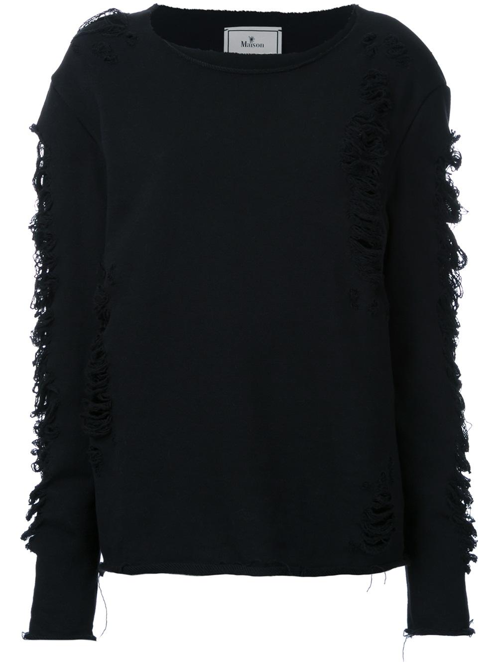 - Miharayasuhiro 黑色 全棉 仿旧效果毛衣。