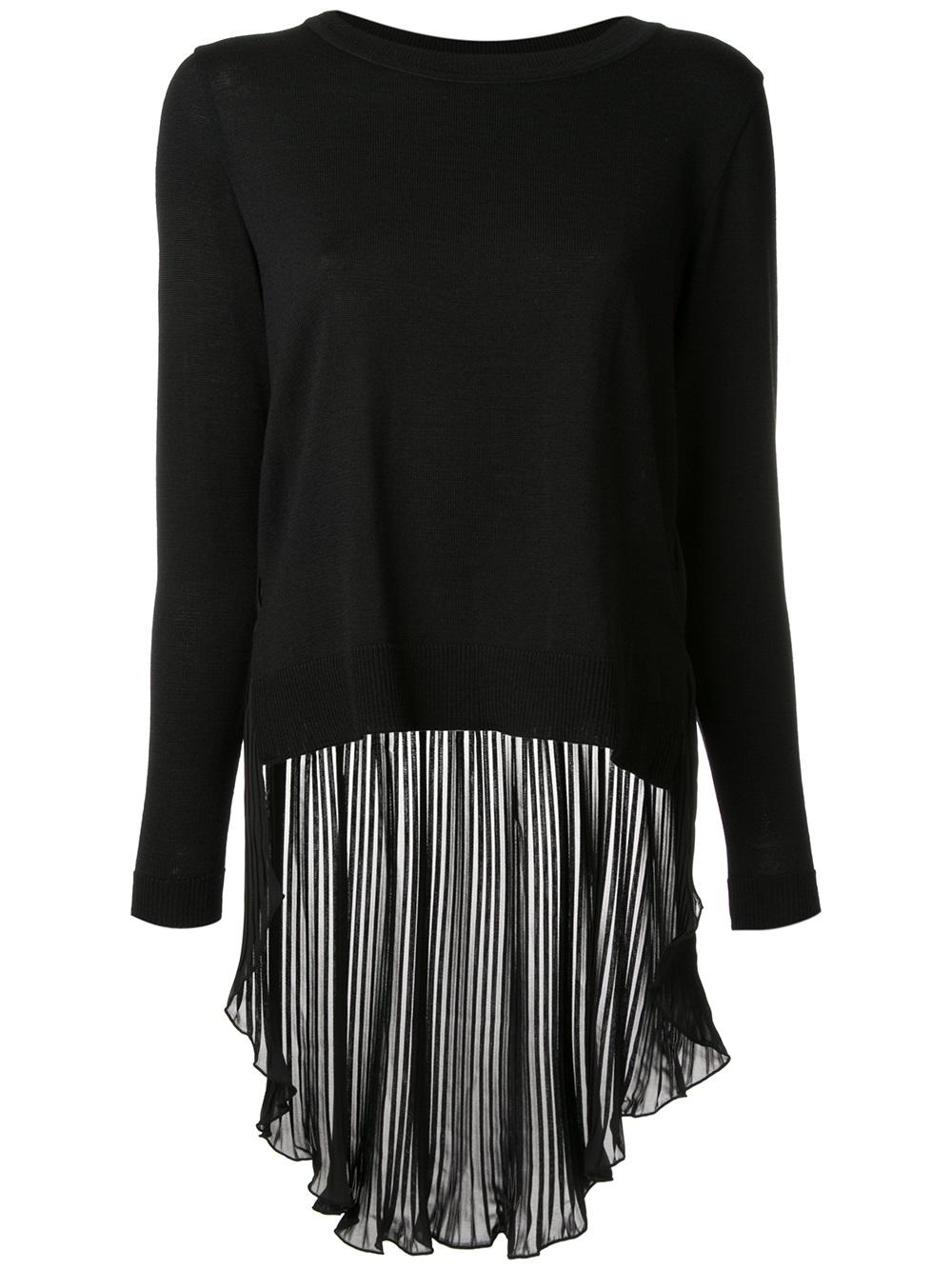 - Black wool pleated elongated tale jumper from Miharayasuhiro.