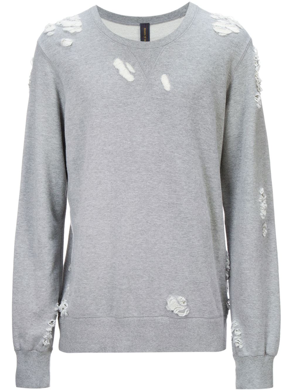 - Mihara Yasuhiro 灰色 全棉 仿旧效果套头衫。 罗纹针织圆领, 长袖, 罗纹底边及袖口。Miharayasuhiro之商品均为手染工艺,可能带有皱痕效果。因此实际商品与图片所显示可能有些许出入。。